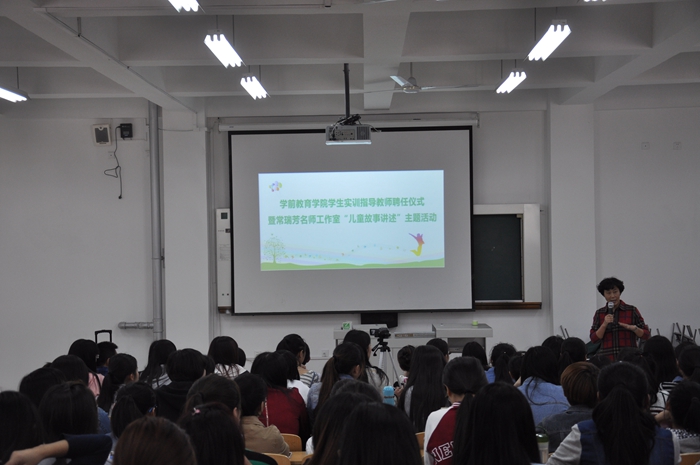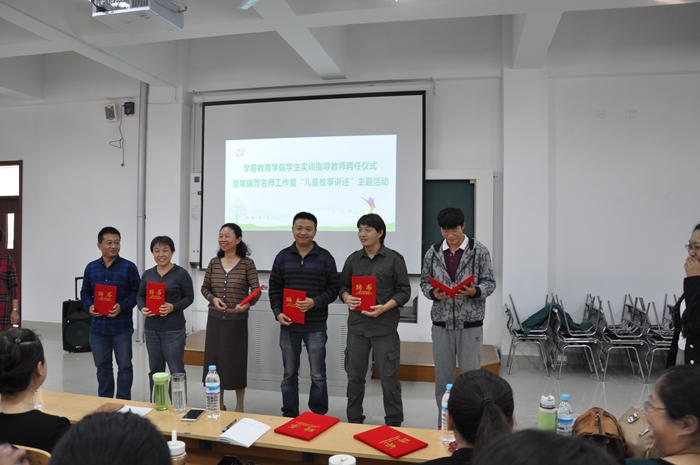 10月14日下午,学前教育学院学生实训指导教师聘任仪式暨常瑞芳工作室“儿童故事讲述”主题活动在阶梯6教室举行 。