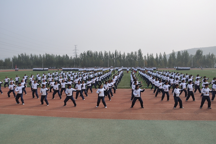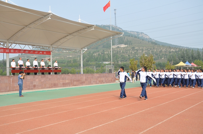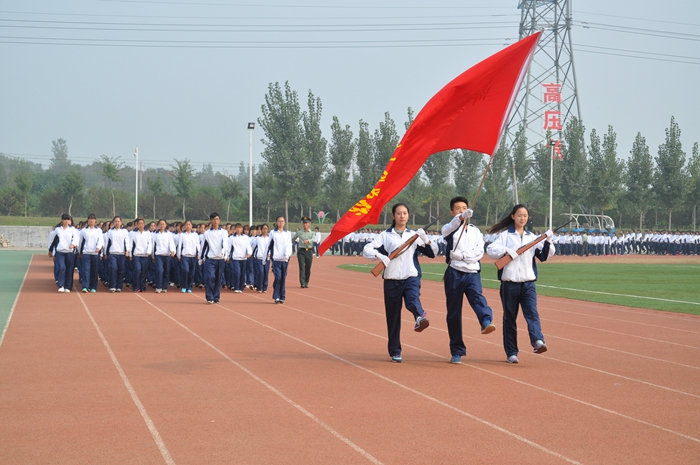 在首先进行的军训成果汇报分列式表演上,同学们以饱满的精神状态,整齐划一的动作步伐,出色地展示了全体新生为期八天的受训成果。随后进行的军体拳、旗语操、队列训练、手语操等表演,充分展现了同学们的蓬勃朝气和昂扬斗志。