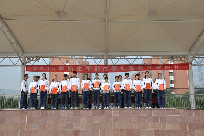 军训成果汇报结束后,2015级全体新生参加了隆重的开学典礼。