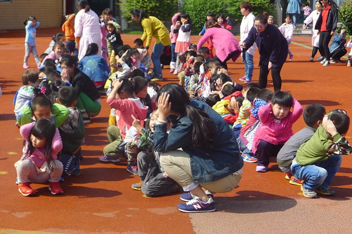 为加强幼儿防震避险的自我保护教育,掌握应急避震的正确方法,在地震等自然灾害来临时,能快速、有序地进行撤离,5月11日,我校堤口路、常春藤附属 幼儿园分别组织全园师生参与“防震避险演练”活动。