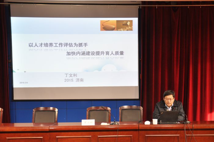 会议首先对2014年发表论文、科研成果获奖的教师进行了表彰。随后,来自山东科技职业学院院长助理、全国高职高专校长联席会项目执行委员会委员、山东省职业技术教育协会副秘书长丁文利教授作了题为“以人才培养工作评估为抓手,加快内涵建设提升育人质量”的讲座。丁教授从解读人才培养工作评估指标体系为切入点,从人才培养工作评估背景、内容、评建三个方面,对高职高专规范办学行为,改善办学条件,增强学校质量意识,推进教学改革等内容进行了深入浅出的阐述,使与会同志对人才培养工作评估有了更全面系统的认识。