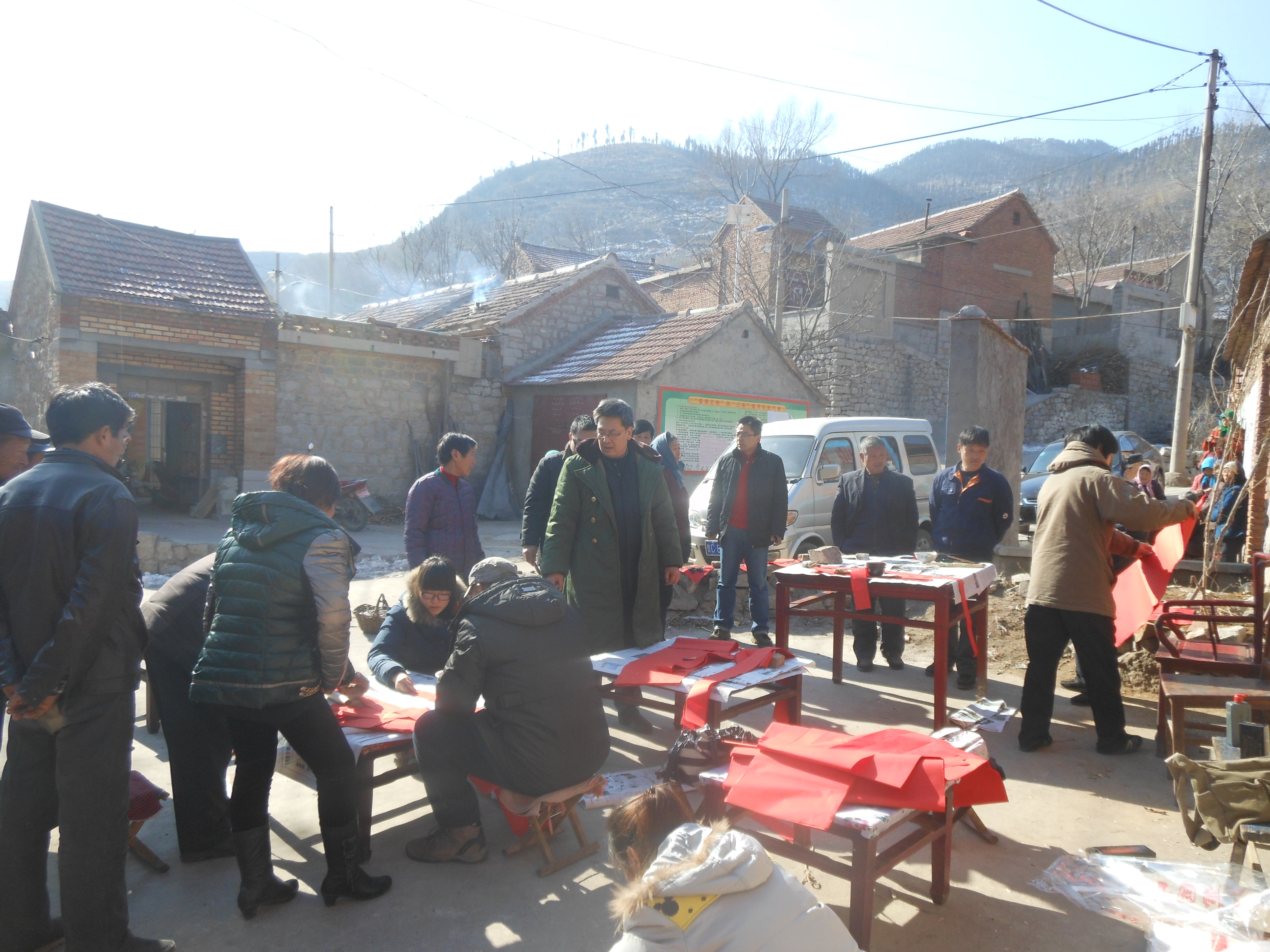 2月5日,我校党委副书记吴士明带领书法老师来到对口帮扶章丘双水泉村,为村民免费书写发放春联。
