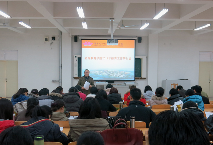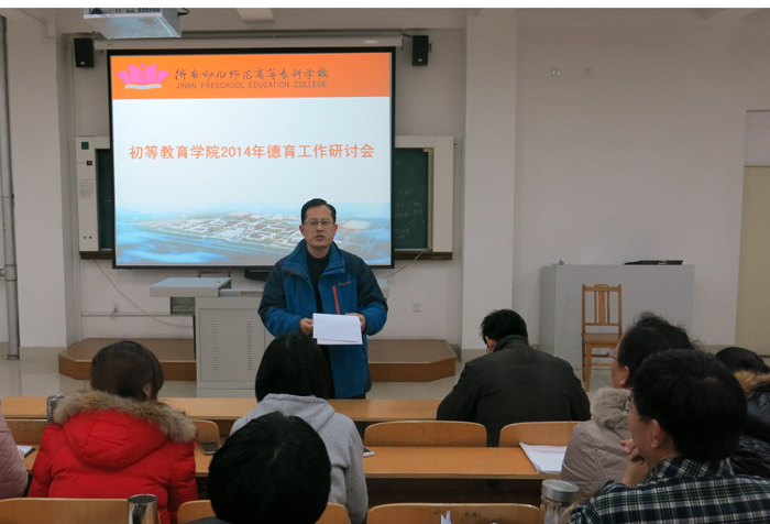 为贯彻落实中共中央办公厅、国务院办公厅印发的《关于进一步加强和改进新形势下高校宣传思想工作的意见》的文件精神,进一步规范学院的德育工作,1月28日,初等教育学院召开了2014年德育工作研讨会。学院袁道颐院长、范立砾副院长、张成强副书记参加了会议,学院全体班主任和年轻教师共60多人参与了交流讨论。会议由学院学工办刘恒老师主持,集中学习讨论了《济南幼儿师范高等专科学校初等教育学院年级德育目标体系实施方案》。