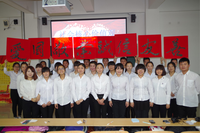 团会通过对“寻梦—有梦——追梦——圆梦”四个主题环节的设计,调动了同学们参与的积极性。内容紧紧围绕着社会主义核心价值观中的“爱国、敬业、诚信、友善”展开,同学们结合自己的人生观畅谈价值观,结合自己的职业理想理解价值观,结合自己的学习生活实践价值观,其间有心灵的沟通,也有情感的慰藉;有新的希冀的萌动,也有新的动力的萌生。