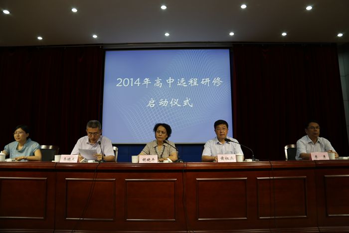 7月15日上午,2014年高中远程研修启动仪式在我校明湖校区隆重举行。济南市教育局巡视员胡晓卉、我校校长黄祖杰、市教研室副主任李勇出席会议,会议由市教育局人事处处长马晓天主持。