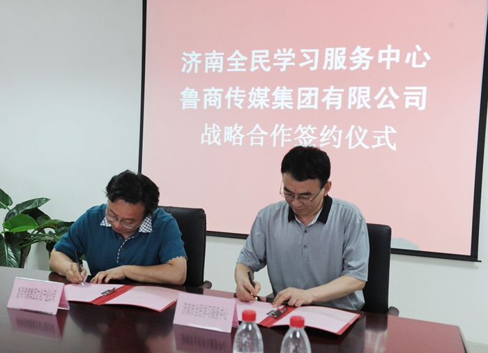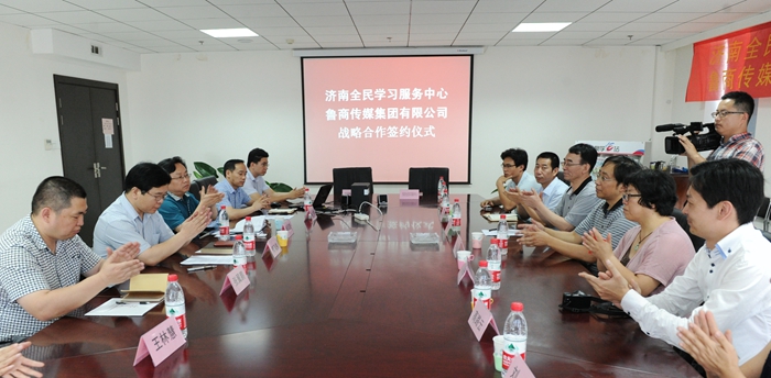 6月24日,济南市全民学习服务中心与鲁商传媒集团在天鹅大厦举行了盛大的战略合作签约仪式,鲁商传媒集团有限公司徐印胜副总经理、我校丁家德副校长及新闻媒体记者等20余人参加并见证了合作协议的签署。