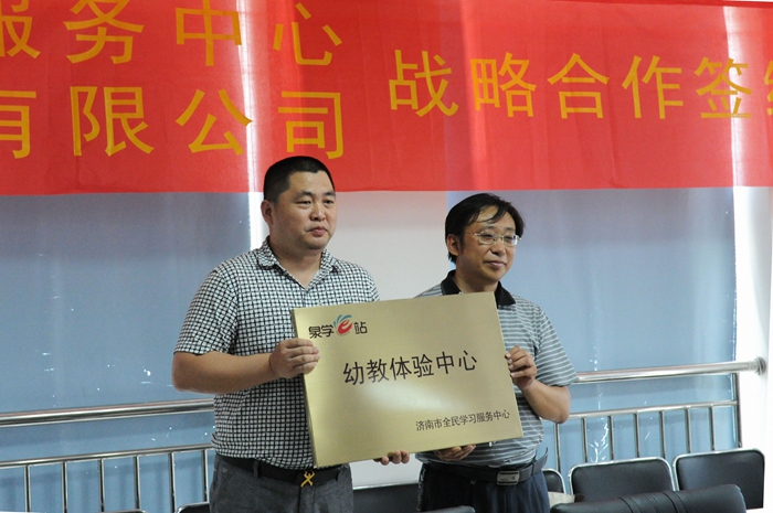 合作协议是在双方友好协商的基础上,本着平等互利、优势互补的原则签订的。鲁商传媒集团副总经理徐印胜和副校长丁家德代表双方在合作协议书上签字。签约仪式上,济南市全民学习服务中心授予鲁商传媒集团“泉学e站——幼教体验中心”站牌,开启了鲁商传媒集团为泉学e站提供包括早教产品、幼儿教育教材、儿童娱乐设施等全面的幼教体验服务的新篇章。