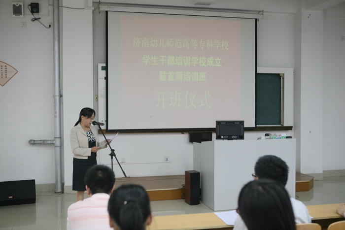 成立仪式上,张静霞处长宣读了《关于成立济南幼儿师范高等专科学校学生干部培训学校的决定》、《济南济南幼儿师范高等专科学校学生干部培训制度》。并对在“寻找身边的榜样”学雷锋实践活动,以及寒假优秀社会实践调查报告评选活动中表现突出、成绩优异的同学进行了表彰。学生干部代表程延雪同学做了热情洋溢的发言。最后纪委王恩丽书记发表了重要讲话。王书记的讲话语重心长,内涵丰富,对全体学生干部提出了殷切的希望:一要自觉践行社会主义核心价值观;二要加强学习不断提高自身素质;三要以身作则,培养良好的工作作风;四要正确处理学习与工作的关系;五要严格要求,确保培训效果和目的。