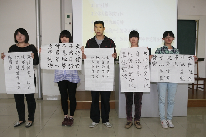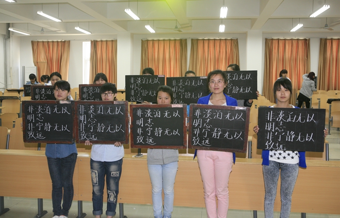 中午,由学校社团联合会承办的“三笔字”现场书法大赛,在教学楼三楼阶梯教室举行。大赛分粉笔字、钢笔字、毛笔字三种,根据分组规定内容,进行现场书写。参赛同学尽展才华,充分展示出师范生扎实的专业基本功。