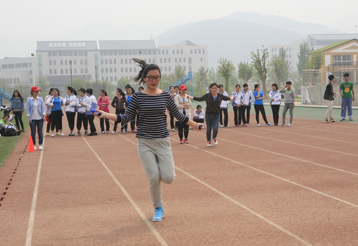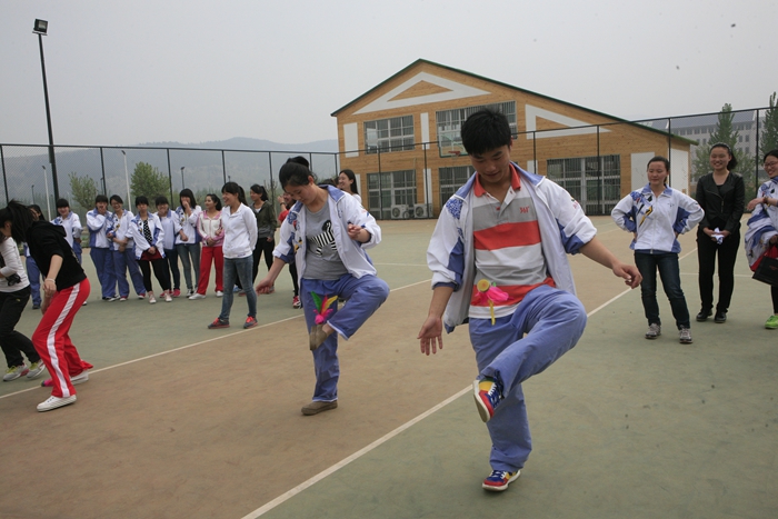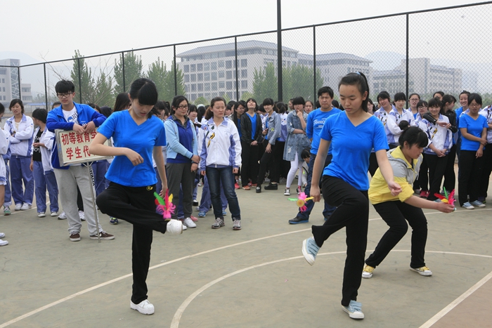 各学院啦啦队为在场观众献上精彩的表演后,分别进行了踢毽子、障碍接力跑等项目的比赛。(团委)