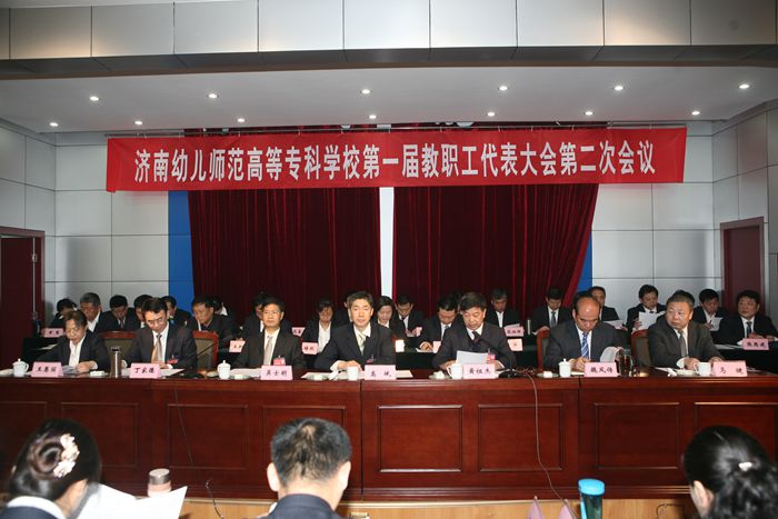大会听取了校长黄祖杰作的题为《培育特色打造精品狠抓落实加快发展为建设美丽和谐的幼高专而团结奋斗》的校务工作报告、财务处长韩以太作的《学校财务工作报告》、副校长马健同志作的《第一届教代会一次会议代表提案工作报告》以及办公室副主任呼庆伟同志作的《关于校训、校风、教风、学风及其校徽设计方案的说明》。审议通过了《关于加强民主管理,促进校务公开实施意见》和《关于加强师德教风建设的实施意见》,选举产生了第一届教代会代表提案委员会。