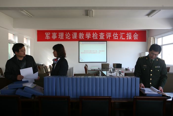 汇报会结束后,专家组查阅了军事理论教学的相关档案材料,并分别召开了教师座谈会和学生座谈会。此外,专家组还对军事教研室、武装部的设置和设施配备情况进行了实地考察。