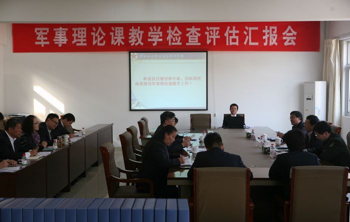 10月25日上午,由高心沛、幸晓涛、黄广传组成的一行三人莅临我校,对我校军事理论课教学工作进行了检查评估。校长黄祖杰主持汇报会,纪委书记王恩丽作了专题汇报,办公室、组织人事处、教务处、宣传处、财务处、学工处、团委、图书馆等部门负责人及军事教研室部分专、兼职教师参加。