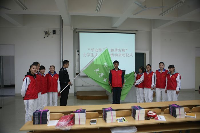 启动仪式上,大学路派出所还向志愿者赠送了《朱警官说防范》技能教科书,并举行了授旗仪式。(安全保卫处)