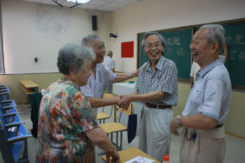 老校友们久别重逢,激动兴奋之情难以言表。他们共同回忆过去的难忘岁月,共同唱响当年陪伴他们成长的歌曲。济南师范作为一所百年老校,以其博大精深的胸怀,培育了数以万计的莘莘学子,他们多为各界精英,为各行各业做出了巨大的贡献。现在虽然大多已经退休,有的年近耄耋,有的重病在身,但他们仍然积极乐观地对待人生,济南师范积极进取的精神在他们身上仍然散发出灿烂的光芒。身患癌症的张国贤老师退休之后仍笔耕不辍,此次携她的第三本书《红梅》为每位老校友献上了一份厚礼。年满80岁的杨诚老师与他的夫人郭瑞芝为大家带来了他们的书画作品选。作为《校友通讯》的首任编辑,身患重病的王光荣老人也在家人的搀扶下来到现场,并为校友献上他的作品集。