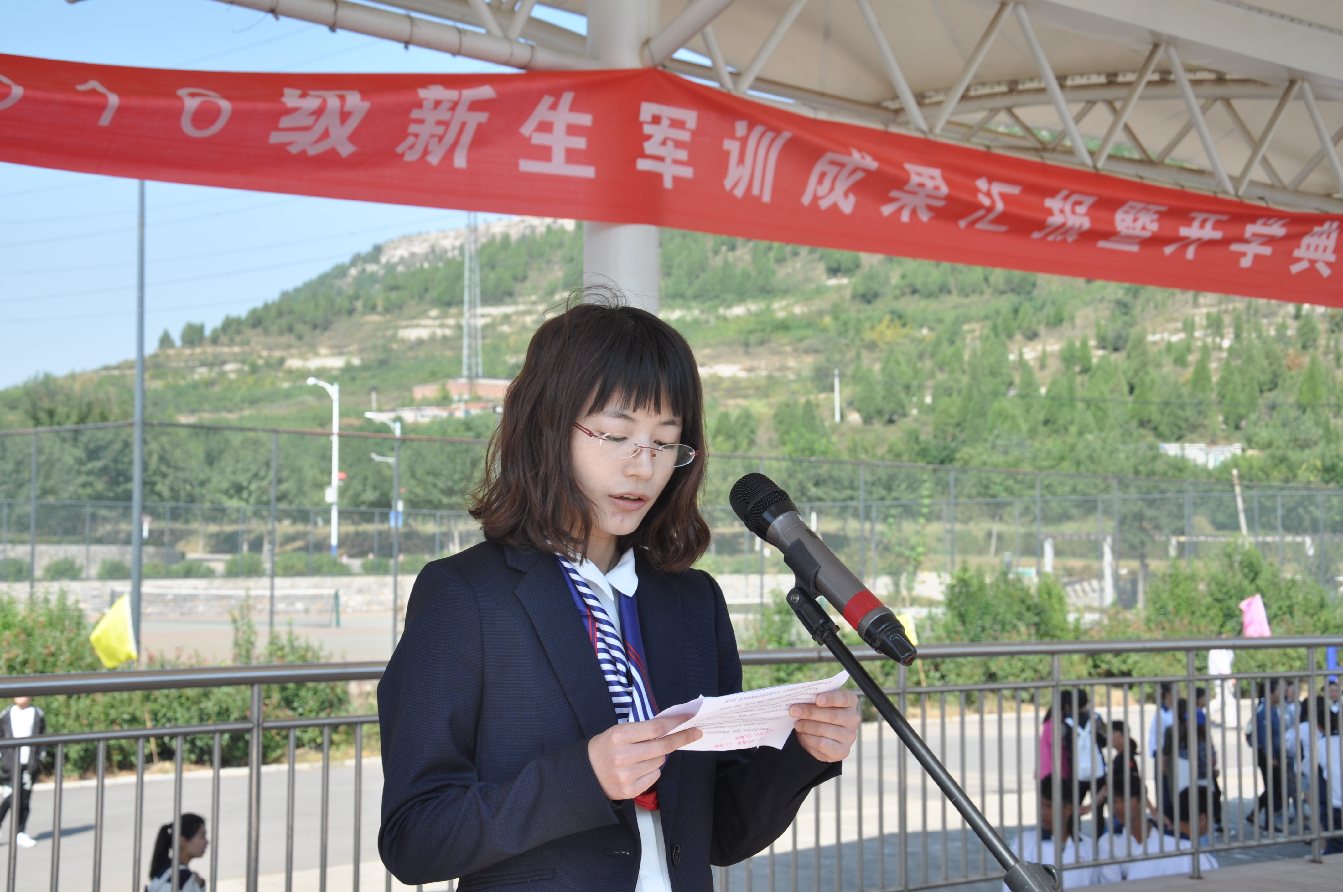 新生代表张燕同学发言表示,要带着在军训中满满的收获,开启自己全新的大学生活。