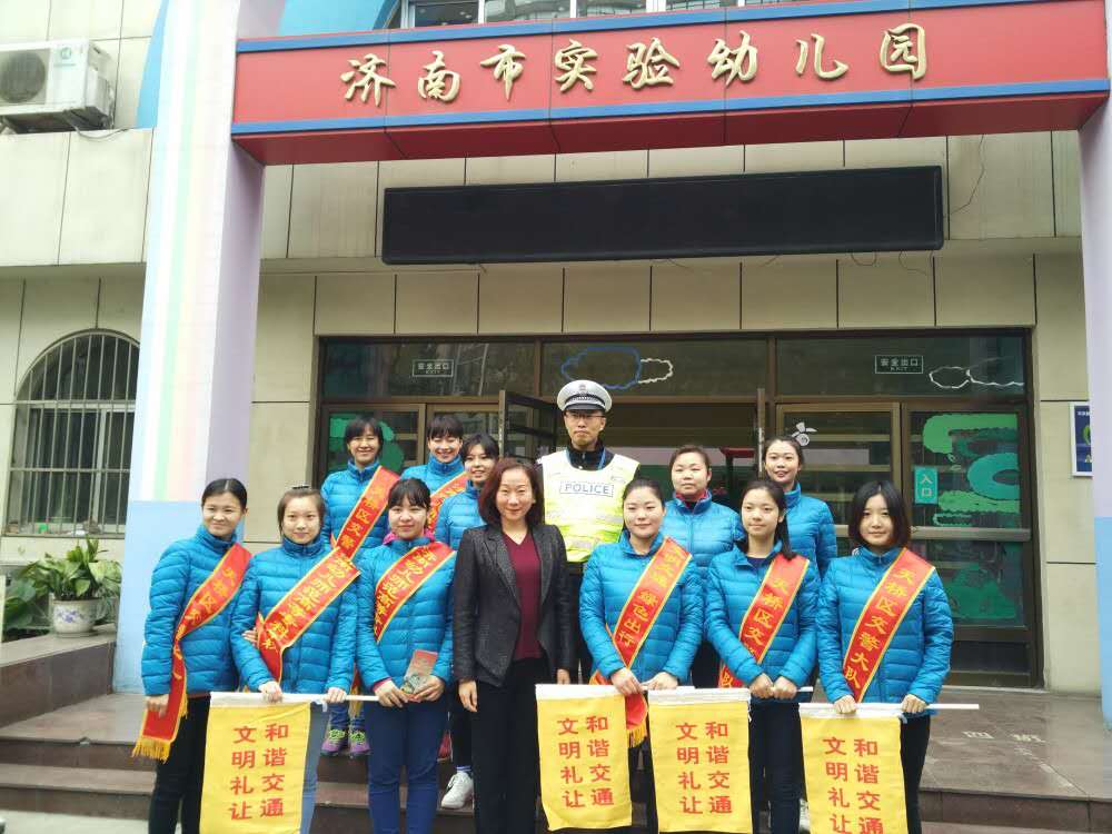 为倡导“文明出行,绿色交通”,切实增强广大群众的交通法制、安全和文明意识,创造良好的道路交通通行环境,10月27日上午,我校堤口路附属幼儿园的老师们在天桥区交警大队三中队交警同志的协助下组成文明交通志愿者服务队在堤口路与纬六路高架十字路口开展了交通安全劝导工作。