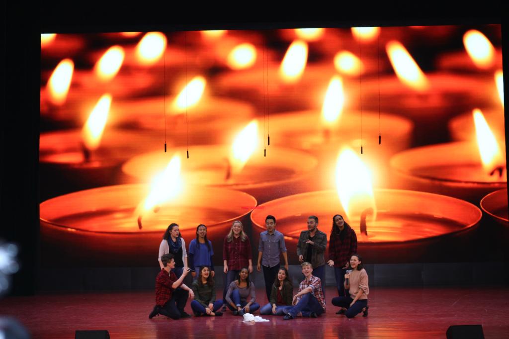 演出中,我校师生精心准备的民族舞、古筝、吟诵等节目和那托马斯学校师生的歌舞节目轮番上演,现场观众不断为演出师生鼓掌喝彩,最后,演出在那托马斯学校的歌舞《鼓》中结束,现场观看演出的接待家庭特意为两校师生献上鲜花祝贺,现场师生深情相拥,近一周的近距离接触交流让美国师生感受到了我校全体教职工的热情与友爱。