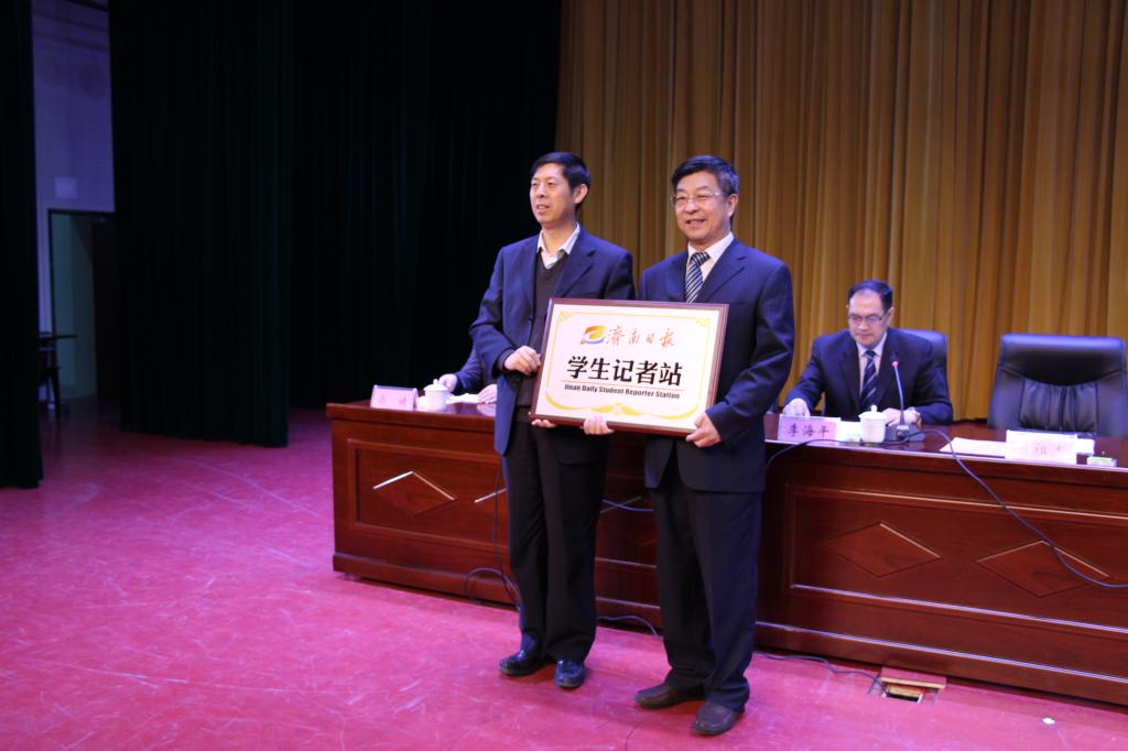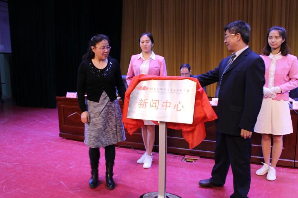 会议举行了我校新闻中心成立揭牌仪式。市教育局宣传法规处处长李艳和黄祖杰书记共同为新闻中心揭牌。会议还进行了济南幼儿师范高等专科学校“济南日报学生记者站”授牌仪式,济南日报报业集团党委书记、董事长、济南日报社社长孙元文为学校授牌,济南日报报业集团副总编尹波宣读《关于在济南幼高专建立济南日报记者站的决定》。