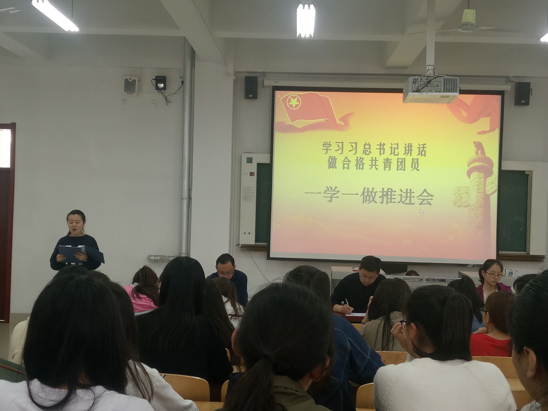 会议首先由学院团委会副秘书长朱玉玺对前期学院“一学一做”教育实践的开展情况进行了总结。她表示,学院团总支在继续做好团组织建设、团员干部培训和完善团员管理系统等工作的基础上,将进一步强化干部管理、增强团员意识,注重教育实践,通过开展形式多样、切实有效的活动,把“一学一做”教育实践工作推向深入。