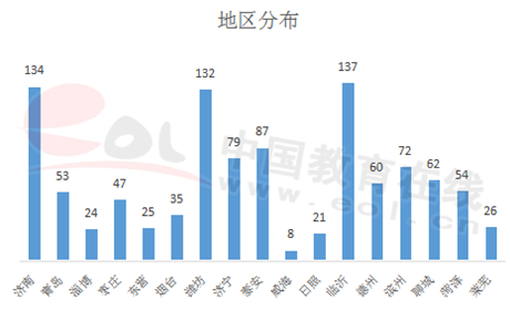 我校的生源全部来源于山东省内,17个地级市均有分布。其中,来自临沂、济南、潍坊这三个地区的新生数量最多。