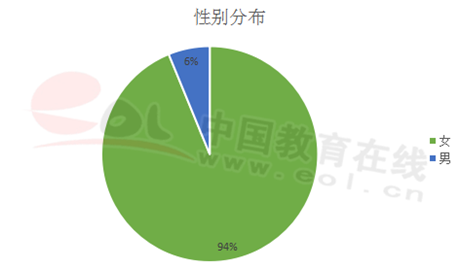 2017级新生男女比例延续了我校的传统,依然是女生的天下。女生共有990人,占比94%;男生共有66人,占比只有6%。