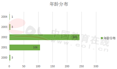 我校中考录取新生共有356名,全部为“00后”,其中,2002年出生的学生人数最多,共计243人,占比68.26%。年龄最大的17岁,年龄最小年仅13岁。