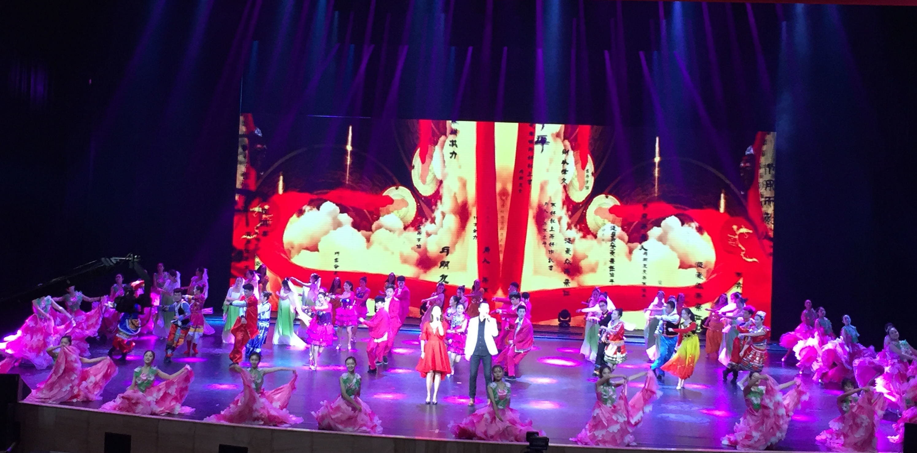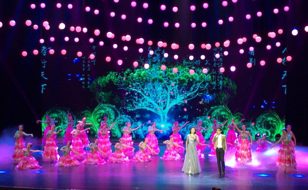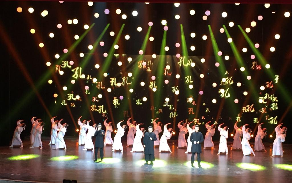 本届国际孔子文化节以“用儒家文化讲好中国故事”为主题,举办了以“家﹒国﹒天下”为主题的文艺晚会。我校受邀参加了儒风歌舞《学而》、家风歌曲《最美的传承》、仰圣组曲《如歌的行走》、情景歌舞《儒风和天下》的演出。