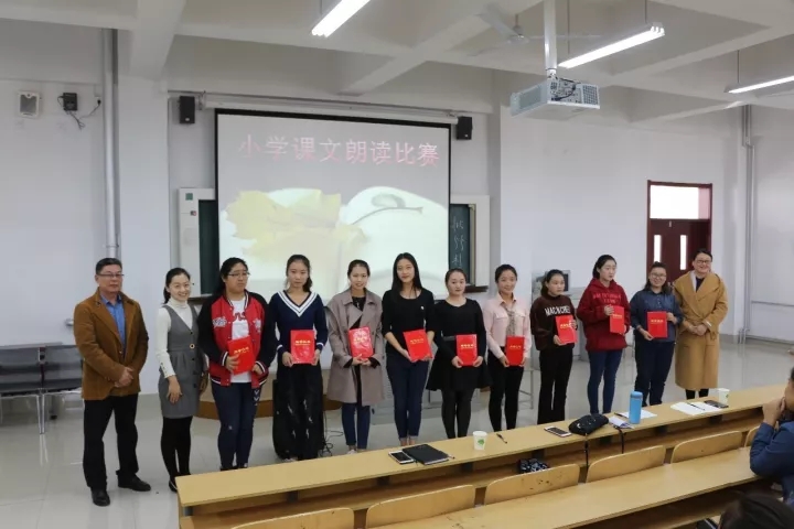 为全面贯彻国家语言文字方针政策和法律法规,大力推广和规范使用国家通用语言文字,提高师范生课文朗读水平,10月12日中午,初等教育学院小学课文朗读比赛在第三阶梯教室举行。