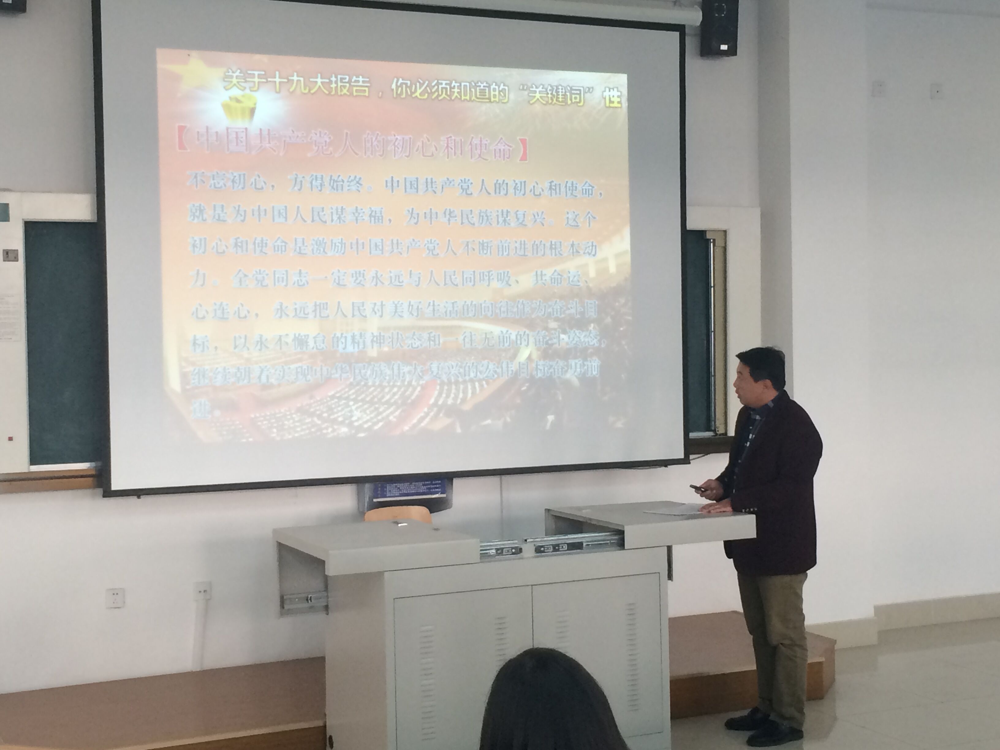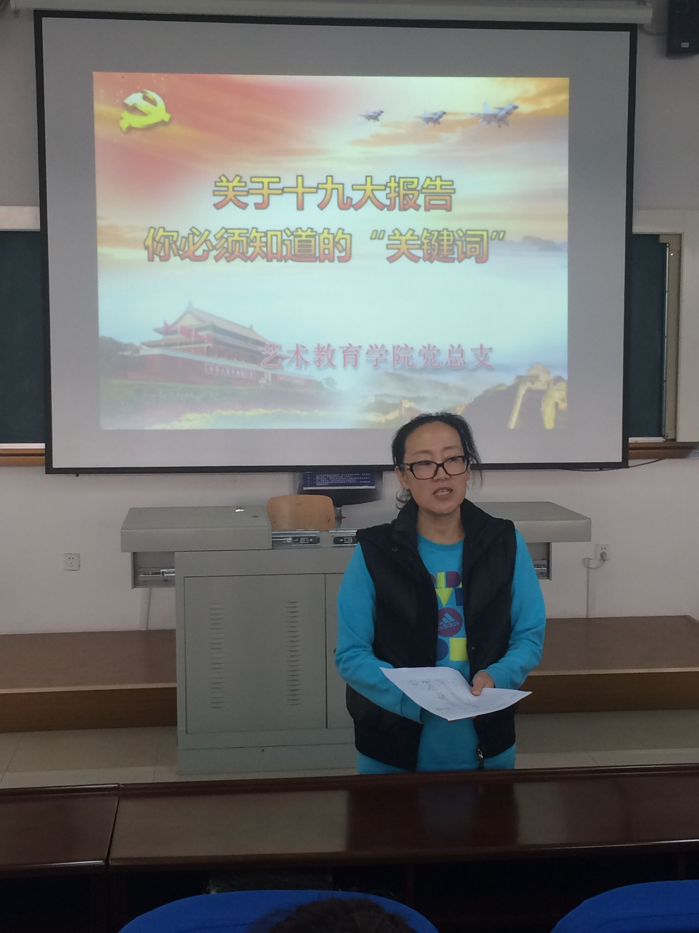 为在学院掀起学习十九大热潮,党的十九大胜利闭幕后,学院党员群众迅速行动起来投身其中。10月30日中午12:30,艺术教育学院党总支在一号教学楼十一阶梯教室开展学习党的十九大精神活动,学院全体教师党员参加了此次活动。