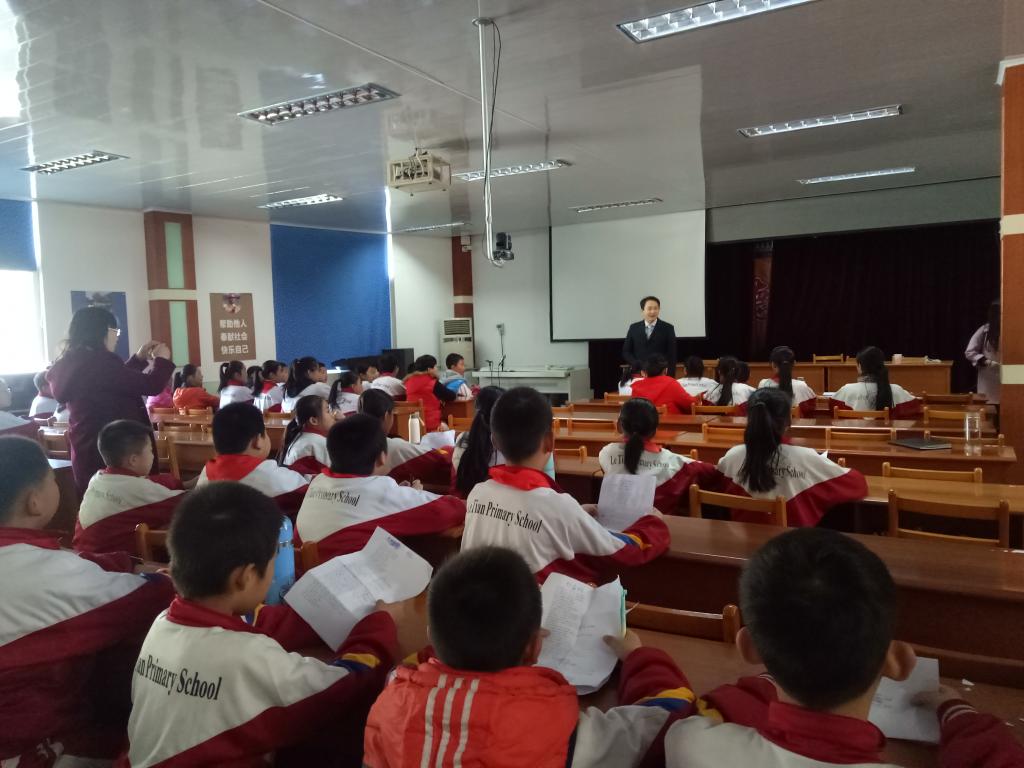 11月10日下午,在初等教育学院孙钿力老师的带领下,英韵社邢振晴等同学一行五人来到了长清区乐天小学参与其课外英语社团活动。