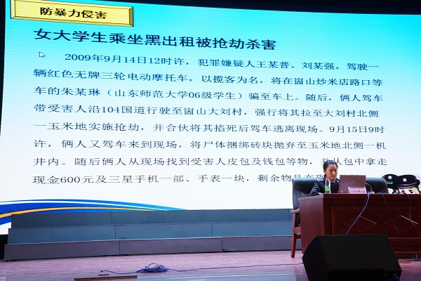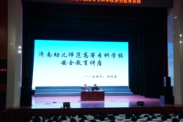 为增强在校学生安全意识,提高自我保护能力,创建平安校园,11月13日,学校安全保卫处处长李世艾与长清区刑警大队警官王晓康在艺术楼演播厅为在校师生进行了安全教育讲座。