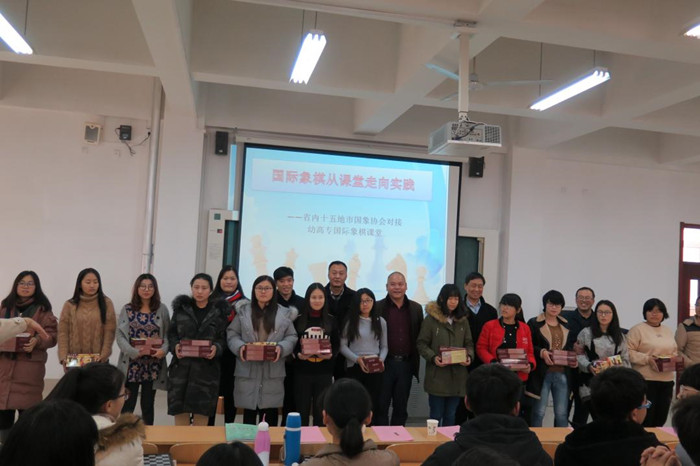 最后,同学们分组讲课,对弈练习。各地市协会领导参观,与学生互动,并将国际象棋棋具作为礼物赠送给同学们,以示鼓励。