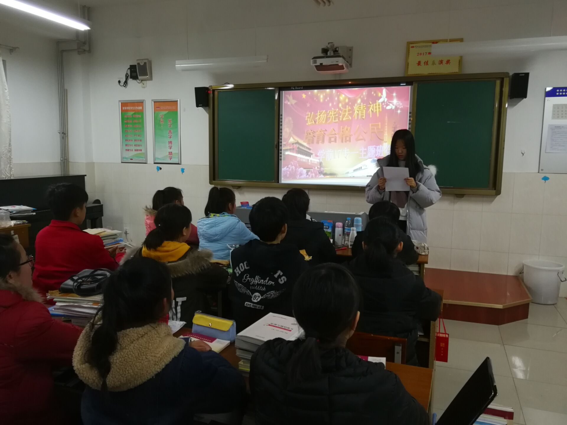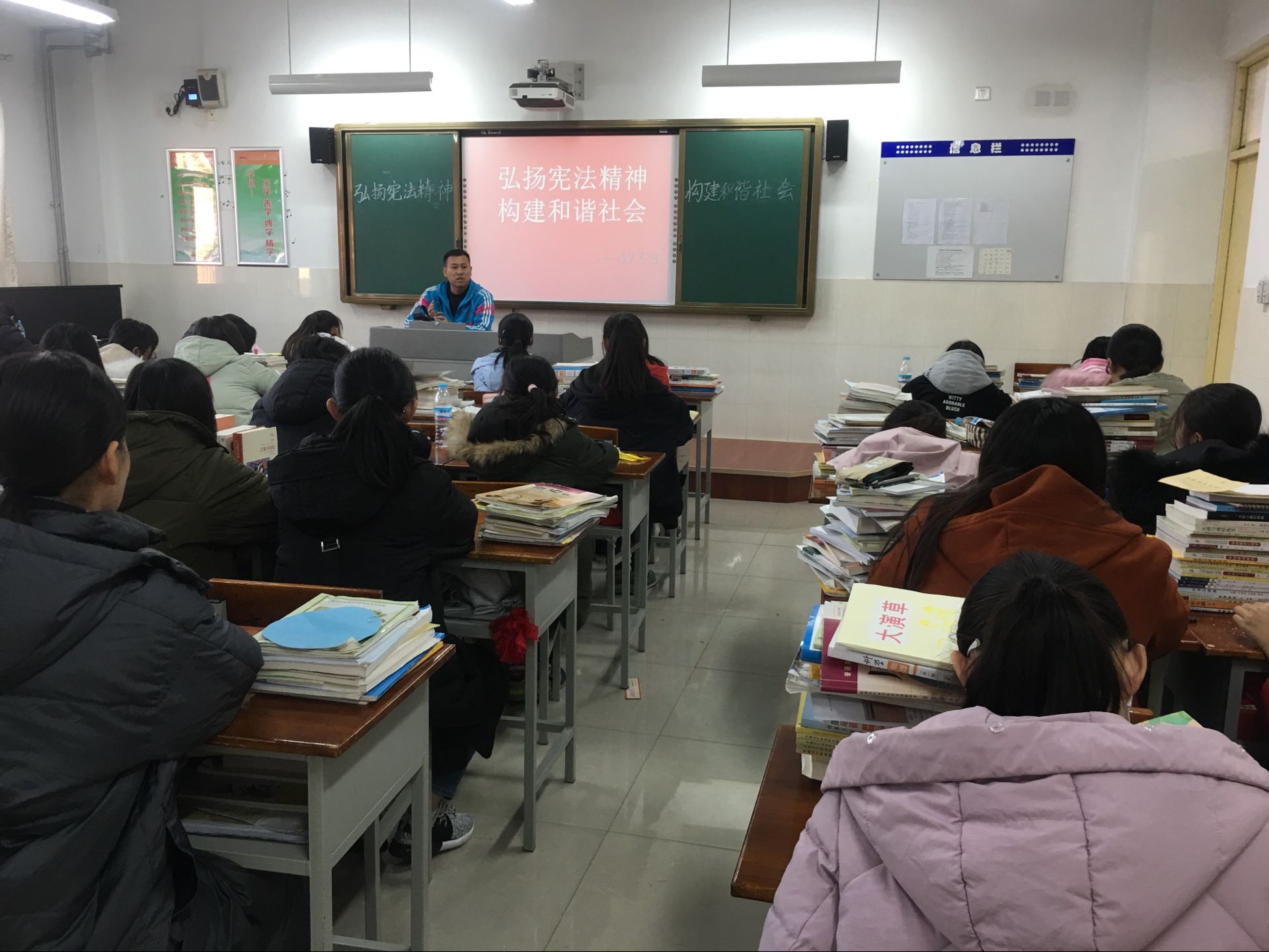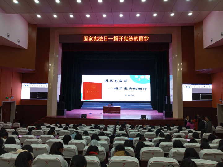 12月4日星期一全校各班利用早自习时间开展《学宪法讲宪法》晨读活动;班会时间,全校各班班主任组织召开《学宪法讲宪法》主题班会;晚上6点半学前教育学院辅导员吉聪聪老师在学校演播厅举办《国家宪法日-揭开宪法的面纱》专题讲座。