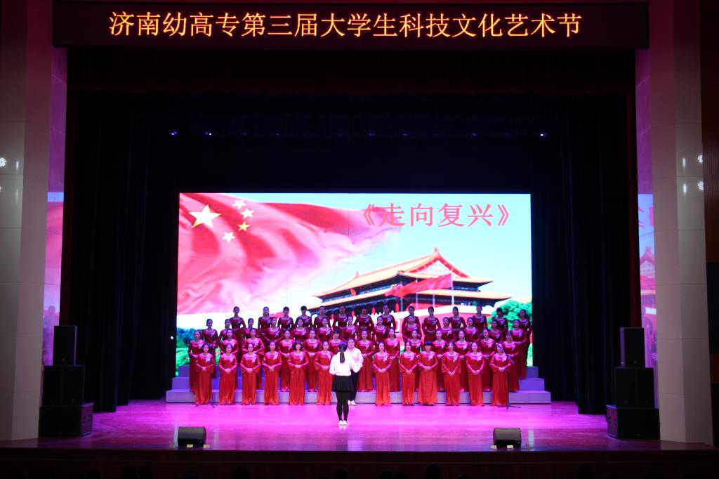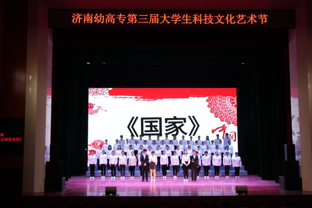 作为我校第三届大学生科技文化艺术节,既是展示教育教学成果的盛会,又是集多种形式于一体的科技文化大餐,也为全校师生搭建了展示自我的舞台。广大师生热情参与,从节目的选择、排练,道具的制作,服装的设计,展厅的布置,灯光舞美的选用以及创新作品的制作,各个活动环节都由学生们亲自组织实施。在开幕式合唱演出专场,同学个个神采飞扬,用美妙的歌声赞颂伟大的祖国、用精彩的表演阐释如火的青春。台上同学精彩的表现不时赢得了台下观众的阵阵掌声。