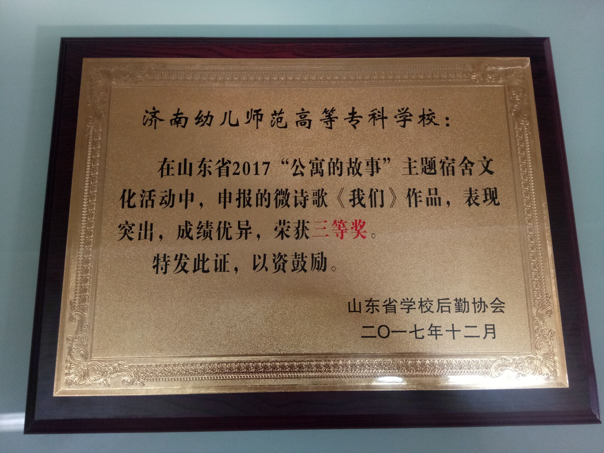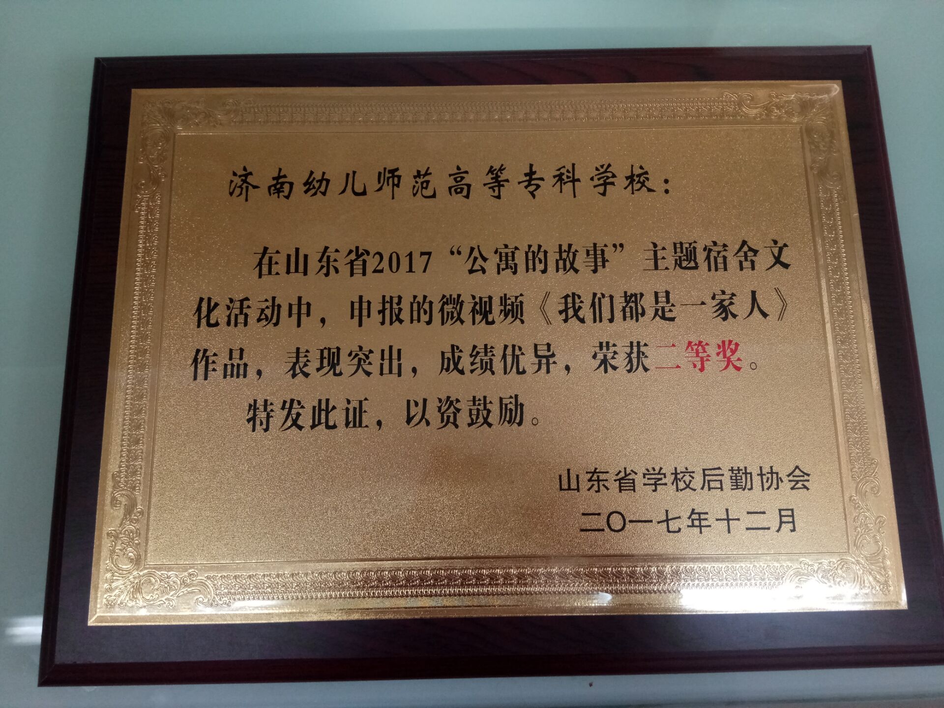 我校在山东省学校后勤协会组织的2017“公寓的故事”主题宿舍文化活动中,认真组织,用心排练,取得了好成绩。其中,申报的微视频《我们都是一家人》荣获二等奖,申报的微诗歌《我们》荣获三等奖。学校在各学院、各部门的认真组织、积极参与下,荣获“优秀组织奖”。