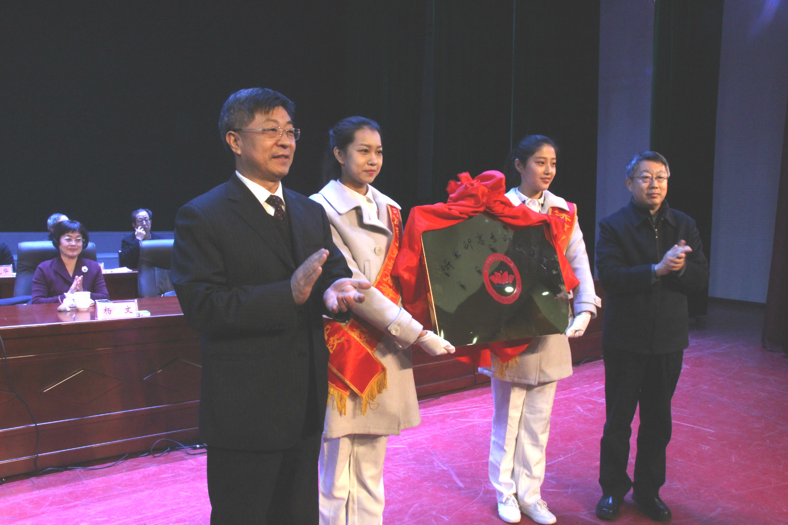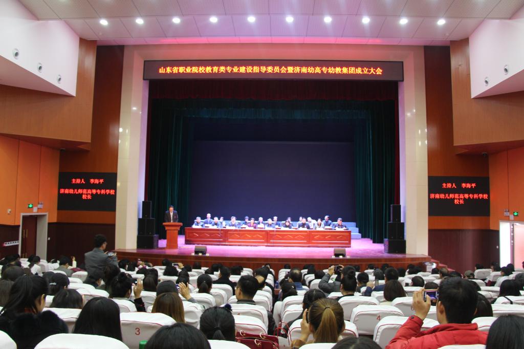 成立大会上,由省教育厅副厅长王坦和学校党委书记黄祖杰共同为济南幼高专幼教集团揭牌。