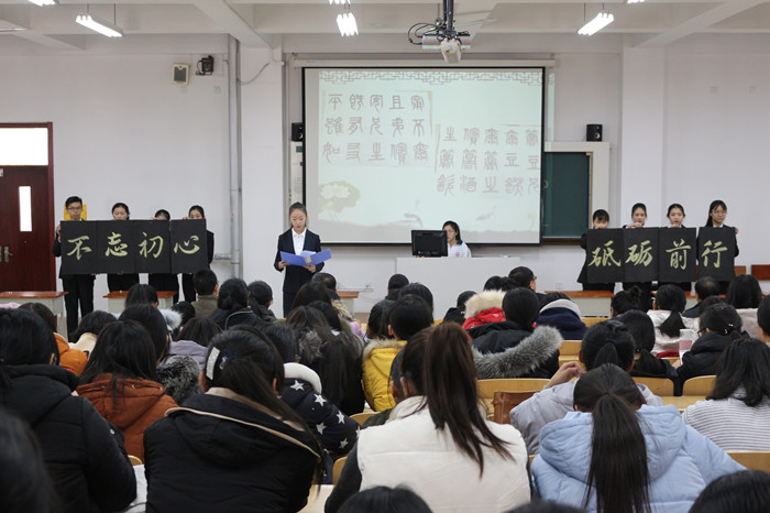 展演结束后优秀学生代表和优秀辅导员代表进行了演讲。范院长宣读了优秀学习委员和优秀辅导员名单。学生会干部给辅导员代表颁发聘书。李校长做总结讲话,鼓励同学们不忘初心,砥砺前行。