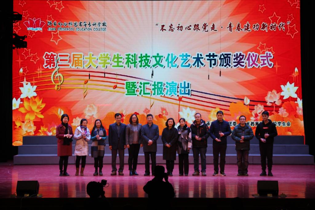 26日下午2点,我校第三届科技文化艺术节颁奖典礼暨汇报演出在学校演播厅举行,省高校工委宣传教育处处长王莉,《山东青年》杂志社总编吴茂华,共青团济南市委学少部部长李雅萍,学校党委书记黄祖杰,纪委书记王恩丽以及学校各处室、学院的有关领导出席活动。