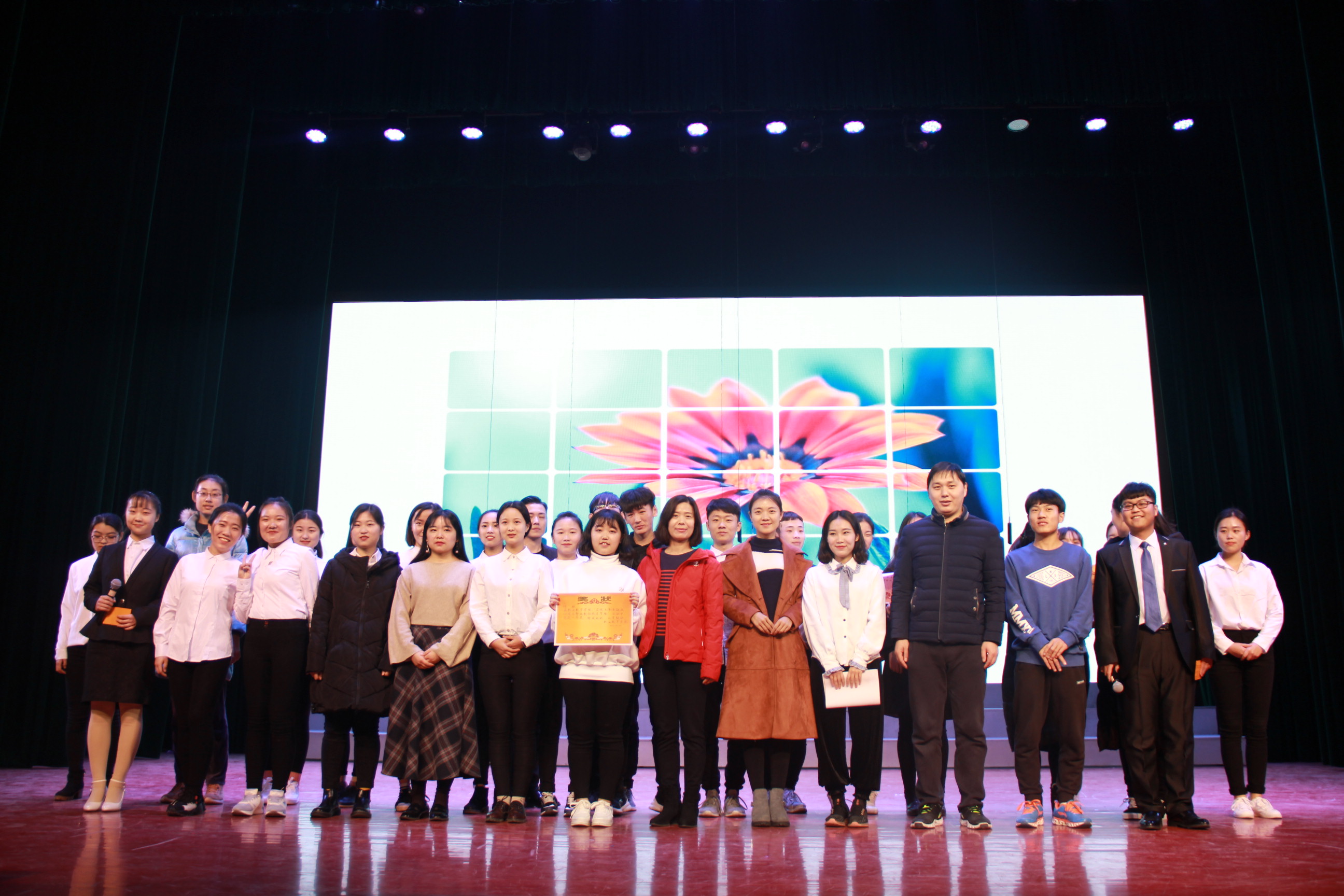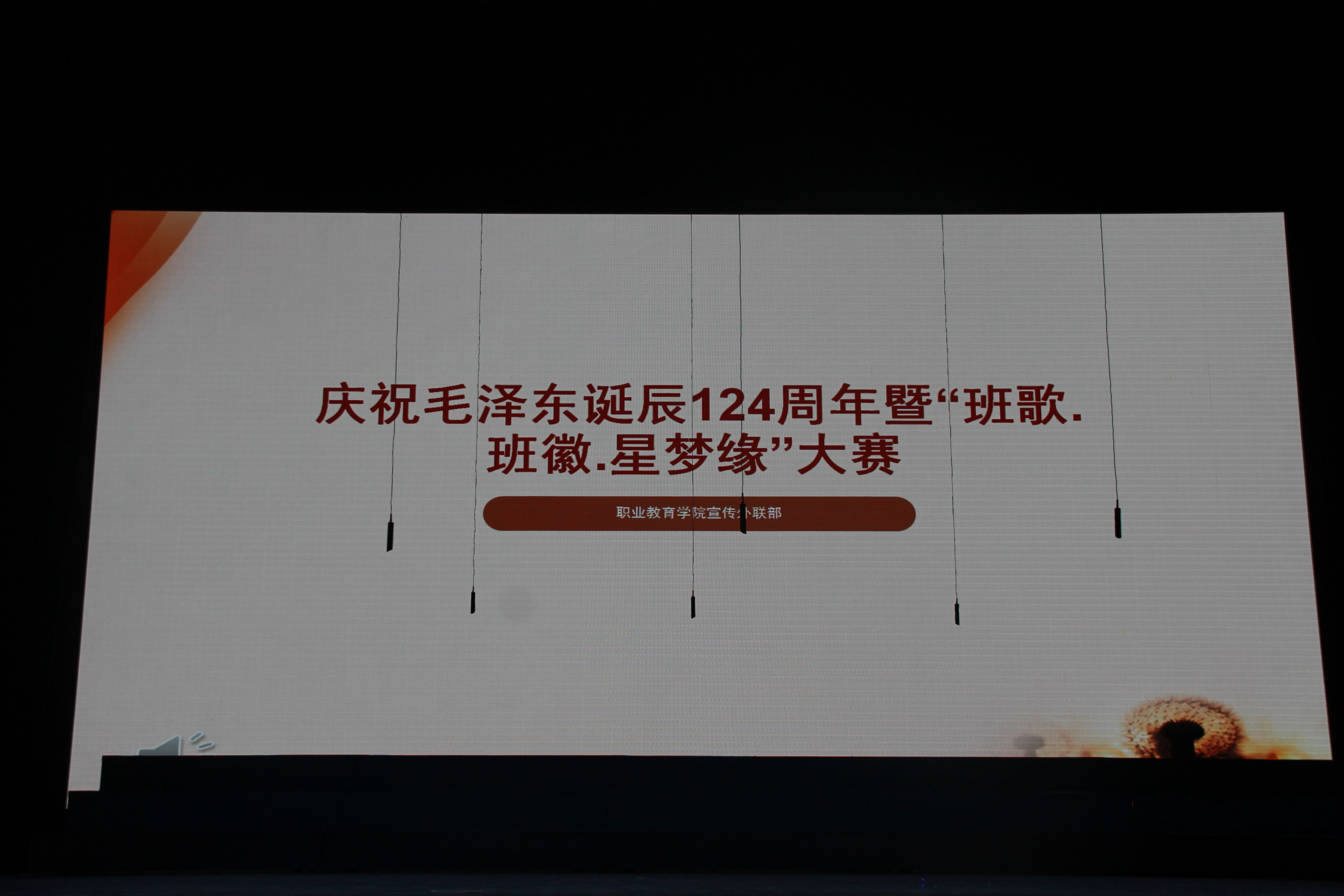 为庆祝毛泽东主席诞辰周年,并进一步加强班级文化交流,增进班级凝聚力,营造出团结有爱、积极互助的班级文化氛围,也为了展现各班同学团结创新、锐意进取、蓬勃向上的精神面貌,职业教育学院于12月26日晚在演播厅举办了“庆祝毛泽东诞辰124周年暨‘班歌.班徽·星梦缘’比赛”。