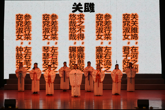 同学们的节目精彩纷呈,老师们的节目更是让人拍手称赞。英语教研组刘川老师带来的一首《青花瓷》让我们在铿锵婉转间品味中国风。李谊晖老师为大家带来的《墙头记》选段,让我们领略到了戏曲艺术的无穷魅力。李梅华老师带领的初等教育学院古筝乐团为大家演奏《梦里水乡》让人仿佛置身于那温柔的江南水乡。