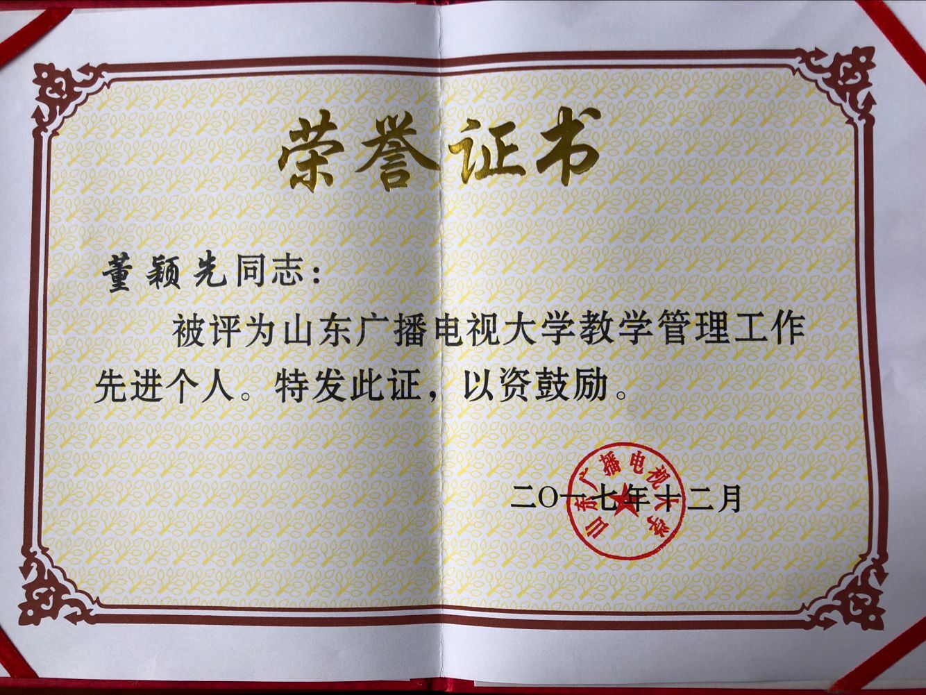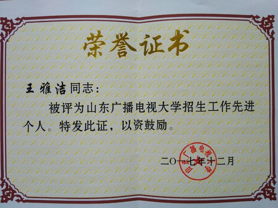 在2017年12月28日召开的全省电大招生教学工作会议上,我校章丘电大分校荣获全省电大招生工作先进集体荣誉称号,长清分校荣获全省电大教学管理先进集体荣誉称号,王雅洁等4人荣获全省电大招生工作先进个人荣誉称号,董颖先等5人荣获全省电大教学管理工作先进个人荣誉称号。