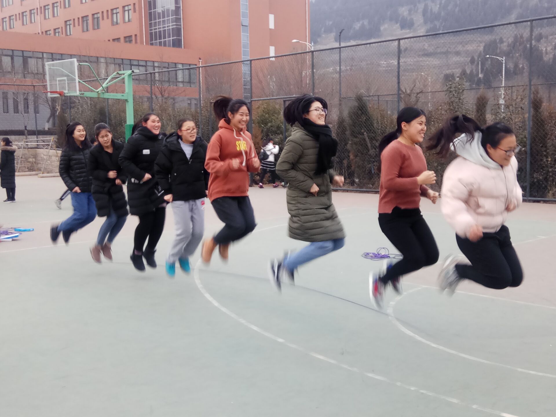 在刚进入的2018年,我校第四届宿舍文化节持续火热进行中,1月16日在校篮球场特举办宿舍文化节文体活动――跳大绳比赛。