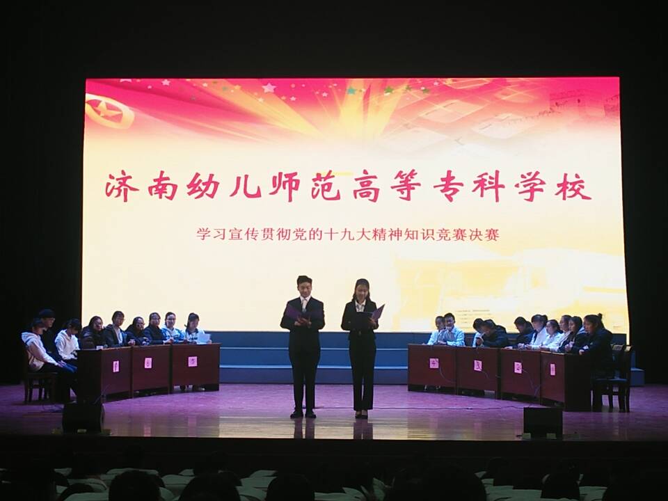 为进一步深入学习宣传贯彻党的十九大精神,进一步激发广大青年学子学理论、用理论的热情,1月18日下午, “济南幼高专学习宣传贯彻党的十九大精神知识竞赛决赛”在演播厅举行,在学院初赛基础上,共有七个代表队参加了此次决赛。