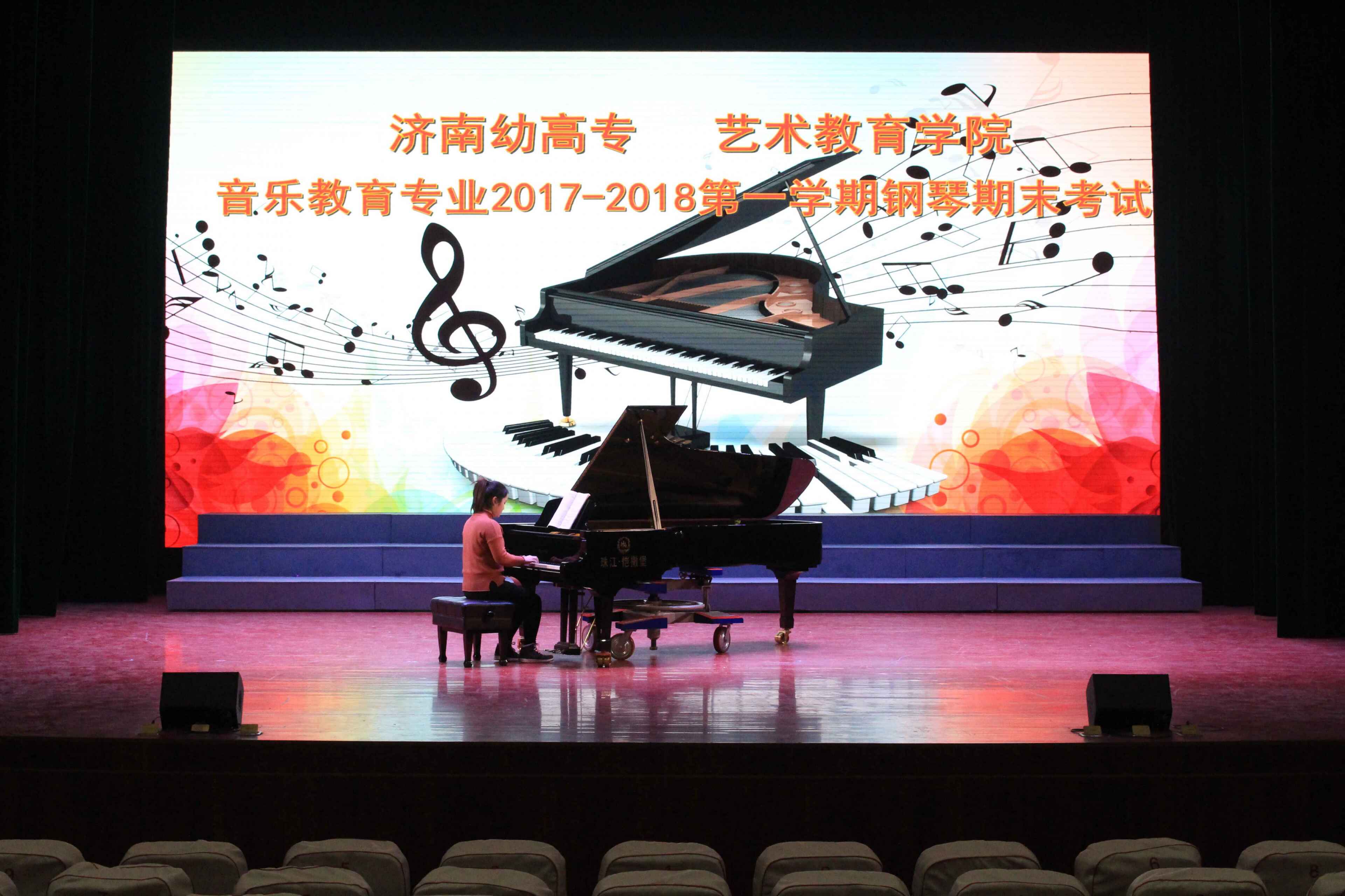 本学期期末要求同科目专任教师集中对学生逐一进行考核,现场评分取平均分作为期末成绩的60%,另40%为平时成绩,音乐教育专业中键盘、舞蹈、声乐科目考试均以舞台形式呈现,专任教师现场评分。