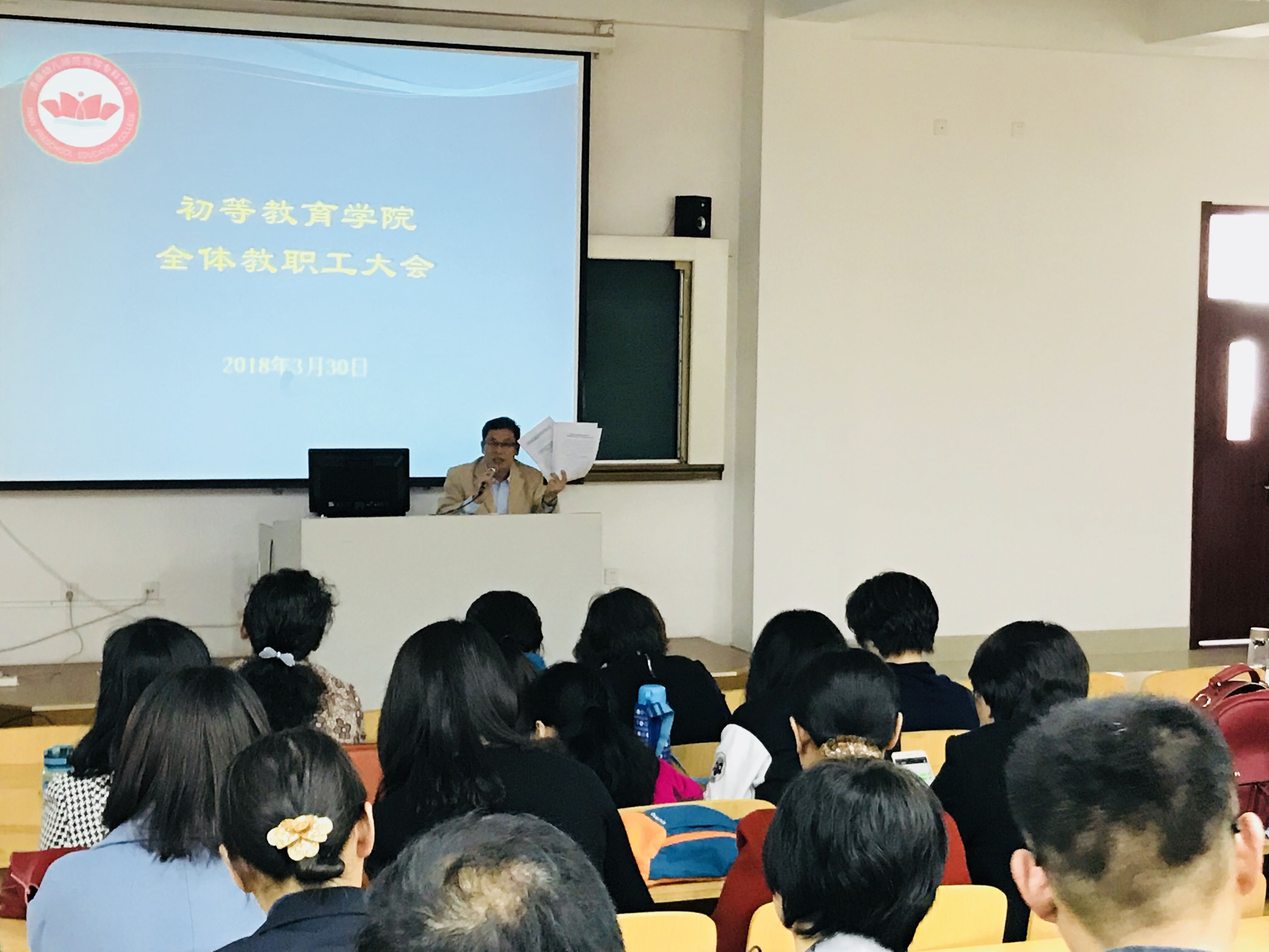 3月29日中午,初等教育学院党员大会在第五阶梯教室召开全体党员大会,传达学习学校党委《关于开展“大学习、大调研、大改进”实施方案》。学院党总支副书记孔建主持会议。