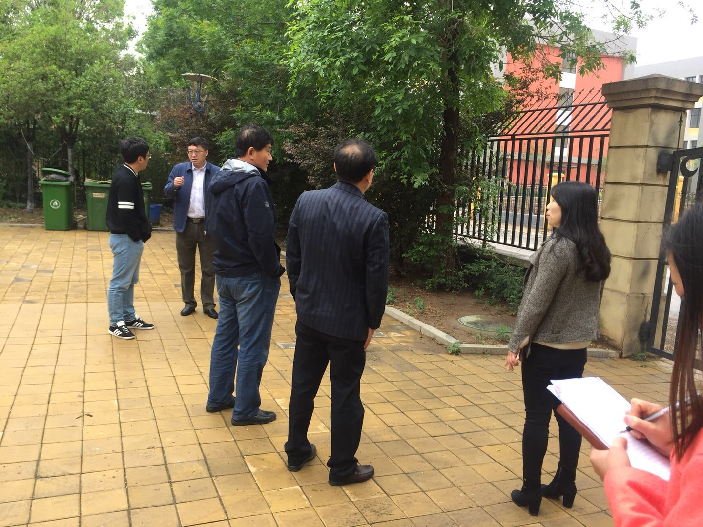 幼儿园管理人员一边聆听指导一边记录,表示一定会更加细致做好各项安全工作,让幼儿园更加平安、有序,更好践行学校的安全指导理念。