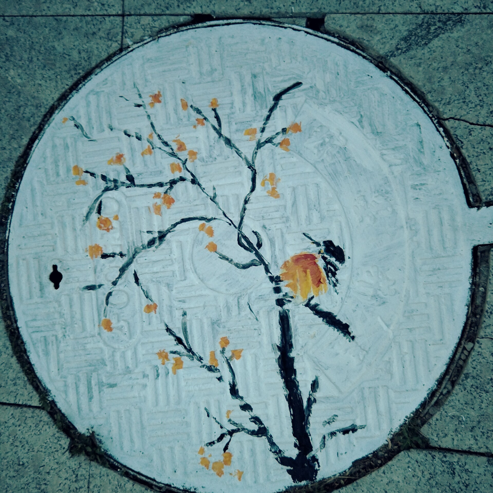 “走过艺术楼的时候看到这些绚丽的井盖,觉得十分骄傲,这是我们艺术教育学院的孩子们绘制的!”课上艺术教育学院的老师这样骄傲的说。