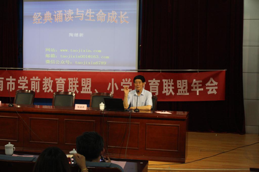 5月19日下午,全国著名教育学者陶继新先生来我校明湖校区做了题为《经典教育与生命成长》的专题报告。本场报告属于我校组织的济南市学前教育联盟、小学教育联盟2018年年会的一项重要内容。来自济南市学前教育联盟、小学教育联盟、济南市园社协同-家庭教育指导种子教师培养计划的成员以及我校部分领导、教师参与活动。