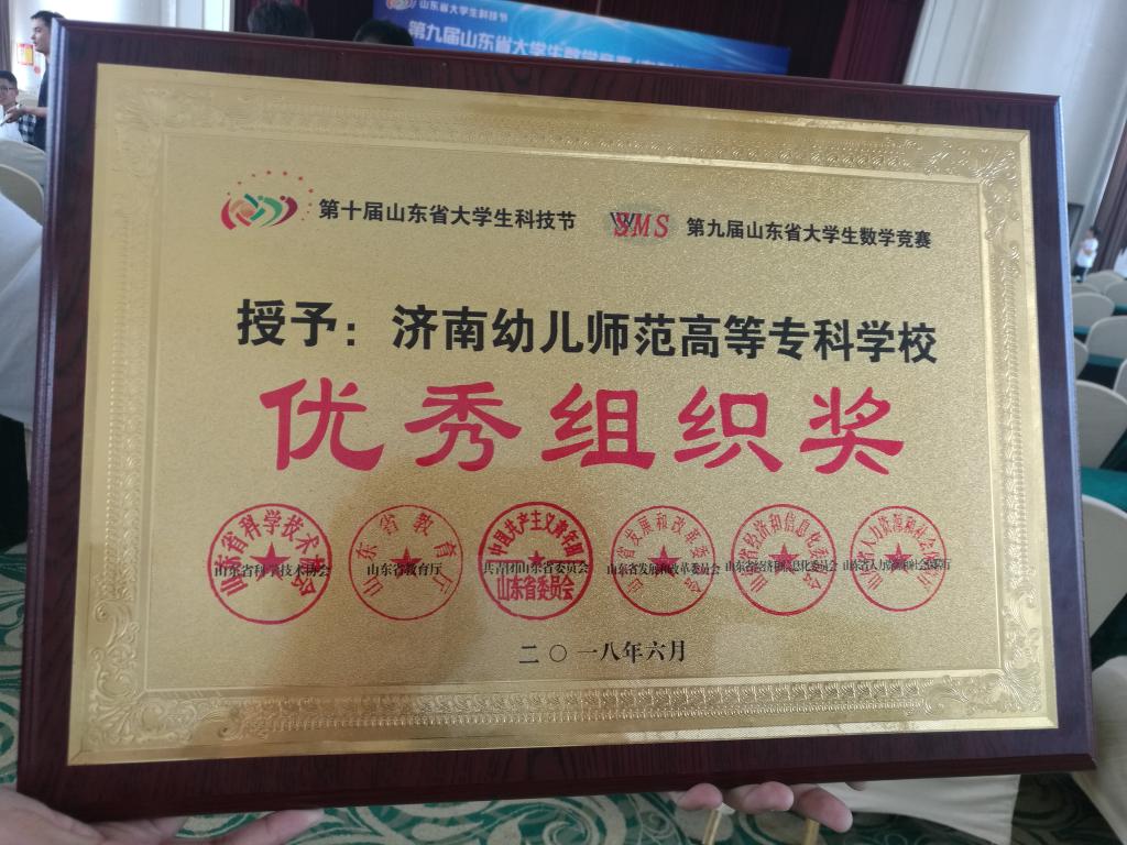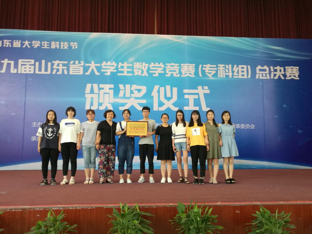 6月2日, 第九届山东省大学生数学竞赛在山东外贸职业学院(泰安基地)举行,我校初等教育学院16级学生张文琪、李宜洺,17级学生薛杉杉、曹亚菲喜获一等奖,16级学生张琪、陈云鑫、张文晴、王月,17级学生赵鑫雨获得二等奖,另外还有9位同学获得三等奖。本届竞赛共有来自57所高职院校的3835名学生参赛,初等教育学院共有88名学生参赛,9位进入决赛学生全部获奖。数学教研室杨缙、梁静两位老师担任指导工作,由于本次比赛成绩突出,大赛授予我校优秀组织奖,两位老师也同时获得优秀指导教师荣誉。